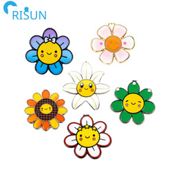 بسعر الجملة زهرة الابتسامة السعيدة شعار مخصص لون أبيض أقحوان زهور شمس ناعمة صلبة بروش