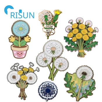 معدن الربيع أصفر زهرة برية الهندباء دبوس المينا نبات الهندباء زهرة حبيب شارة مخصص الهندباء طية صدر دبوس بروش