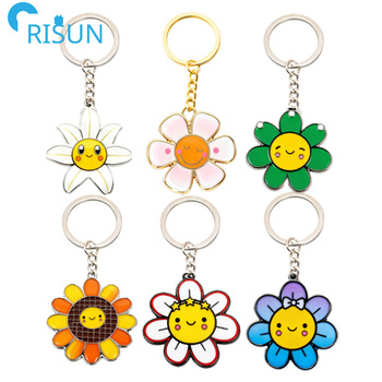 بيع بالجملة سلسلة مفاتيح بالمينا زهرة ابتسامة سعيدة lavero شعار مخصص سلاسل مفاتيح أقحوان بيضاء نعم فعلا لا حلقة مفاتيح دوارة