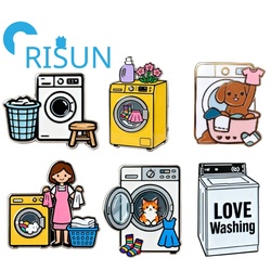 Venta al por mayor personalizado Kawaii lindo Kitty Chick lavandería Pin suavizante de tela alfileres broches Metal lavandería lavadora esmalte Pin