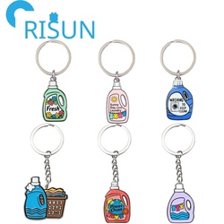 Personalizado de dibujos animados Kawaii lindo gatito pollito lavandería esmalte llavero suavizante de tela llavero Metal lavandería lavadora llavero