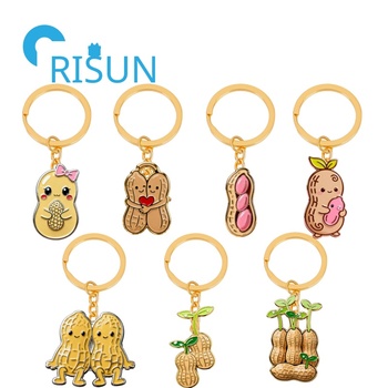 Fábrica al por mayor personalizado Kawaii cacahuete esmalte llavero Metal llavero gordito patata tuerca cacahuete amante esmalte llavero