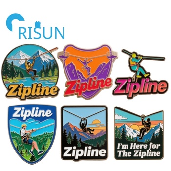 Fábrica esmalte Thrill Ride deportes extremos Pin insignia logotipo personalizado aventura al aire libre Zip forro solapa Pin broche Zip Line Pin insignia