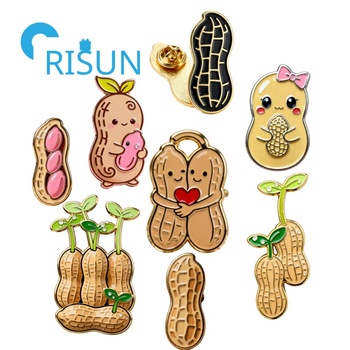Fábrica al por mayor personalizado Kawaii maní esmalte Pin Metal solapa pines broches Chubby patata tuerca maní amante esmalte Pin insignia
