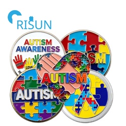 Pieza de rompecabezas de resina epoxi de esmalte suave de Metal personalizado moneda coleccionable Arco Iris en forma de corazón monedas de desafío de concienciación sobre el Autismo