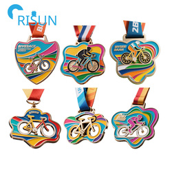 Medallas deportivas de competición de ciclismo 3D de metal personalizadas al por mayor, medalla de carrera de bicicleta de equilibrio con logotipo personalizado, Medalla medallón