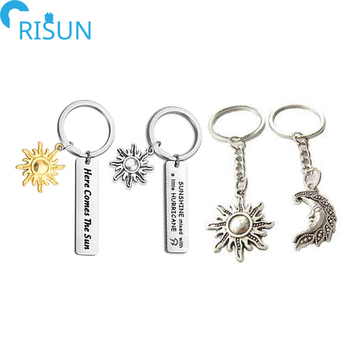 Llaveros de Metal con forma de Luna y sol para parejas, llaveros personalizados en 3D, de la amistad, los mejores amigos, venta al por mayor