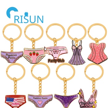 Ropa interior de Bikini Rosa Sexy de Metal personalizada, traje, llaveros, sujetador de chica de dibujos animados, ropa interior íntima, bragas, llaveros esmaltados, llavero