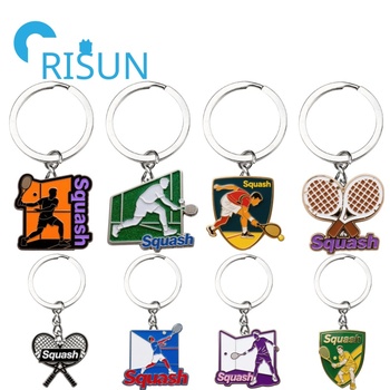Fábrica Metal Squash Ball Esmalte Chaveiro Tênis Squash Raquetes Chaveiro Logotipo personalizado Racquetball Squash Esportes Esmalte Keychain