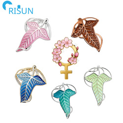 Atacado de Metal Elven Broche Personalizado 3d Senhor dos Anéis Esmalte Pin Feminino Diamante Planta Folha Camisa Pin Esmalte Cor Preenchimento Nenhum MOQ