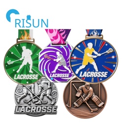 Fabricação Lacrosse Medalhas Custom Lacrosse Sticks Prêmios Medalha De Troféu Esporte La Crosse Medalhão com Fita De Pescoço