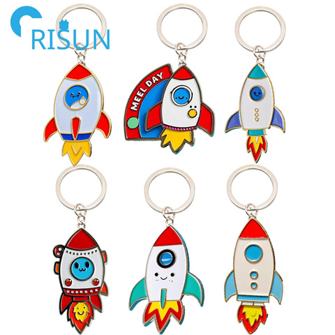 พวงกุญแจแพลนท์จรวดสีรุ้งแบบย้อนยุคพวงกุญแจเคลือบแข็งแบบจรวดออกแบบโลโก้ได้ตามต้องการ
